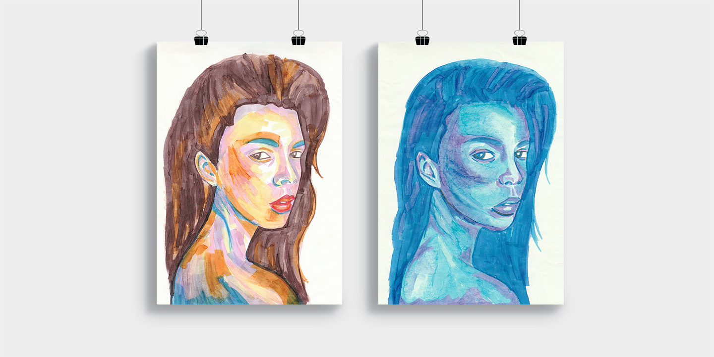 I was scared of messing up the colours and strokes. In the end, I decided to trust my instincts and create these two portraits in different colours.
