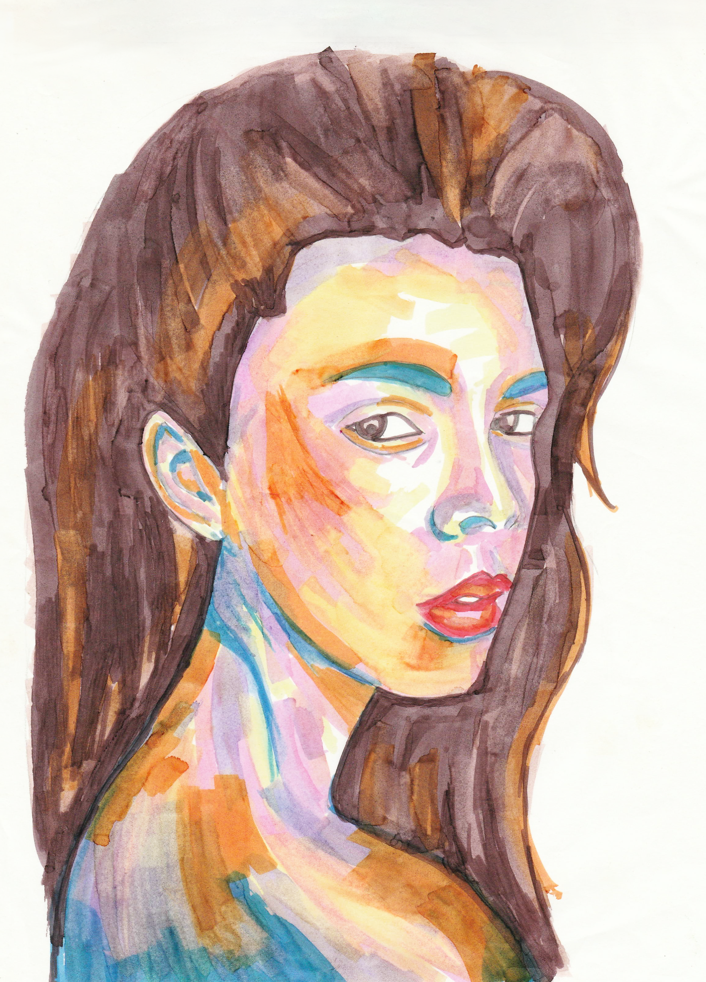 Most of the expressionist portraits are painted using acrylics or oil paints. I decided to explore with markers for a change. With markers, I have to consider how the layers blend and layer with each other as it is transparent, just like watercolours.