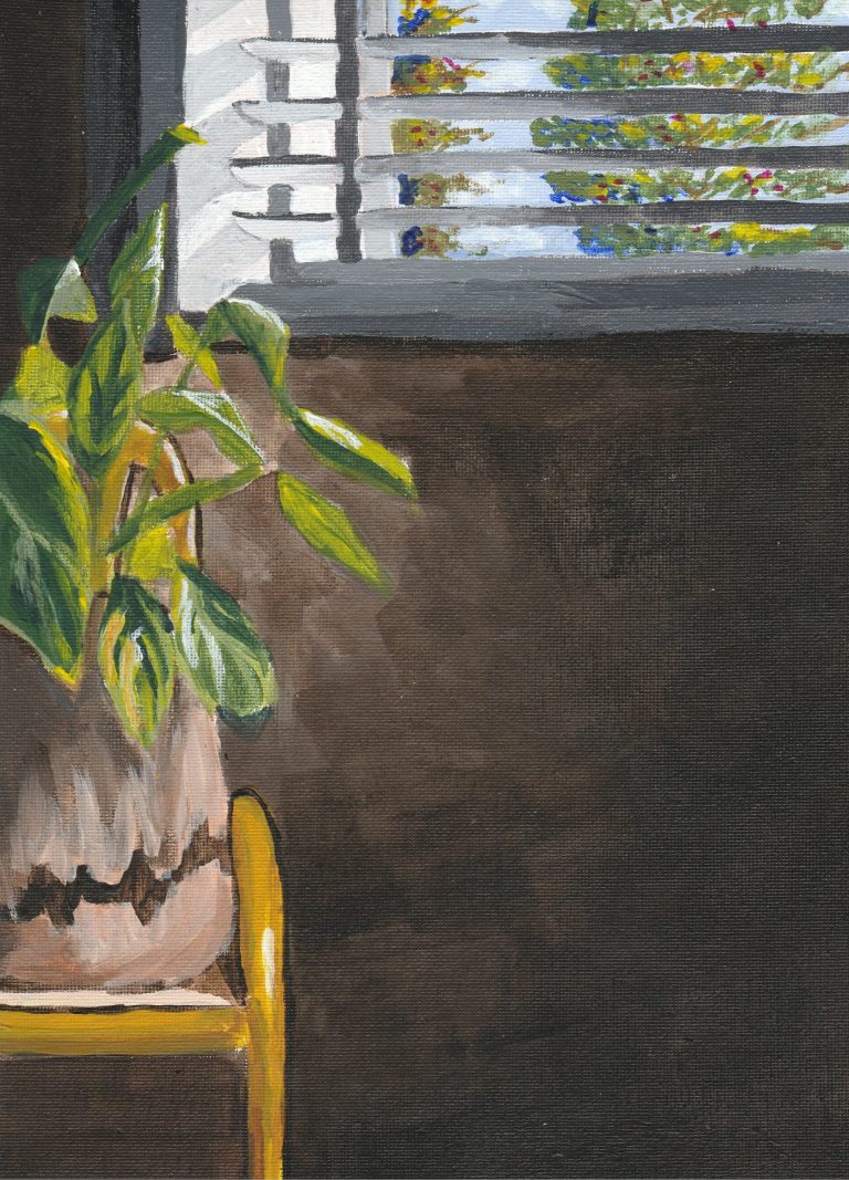 Once the base colours dried, I added more details to the leaves, and chair.