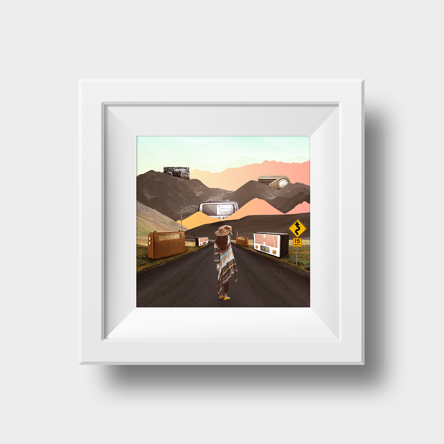 I took a literal approach to this. I imagined myself going on the journey, listening to different music. Along the way, I have encountered different radios from different eras to show the evolution of music together with the technologies.